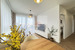 Salon z aneksem kuchennym to serce mieszkania - jasny, harmonijny, otwarty na światło i balkon.