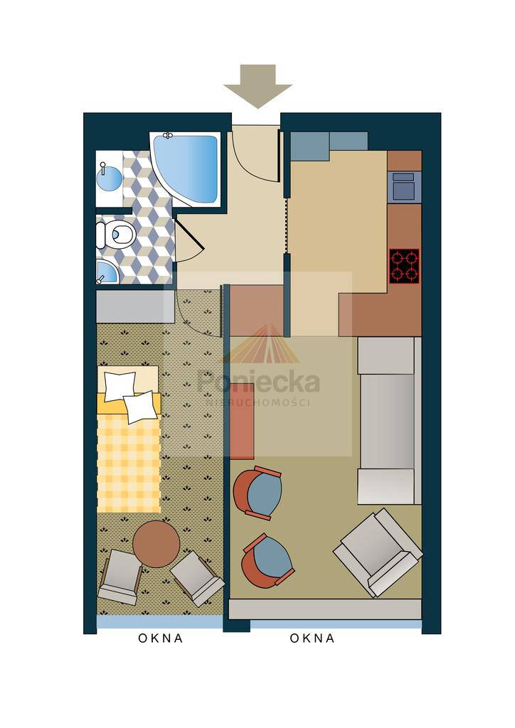 - funkcjonalny układ salon z aneksem + oddzielna sypialnia