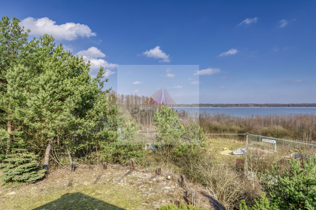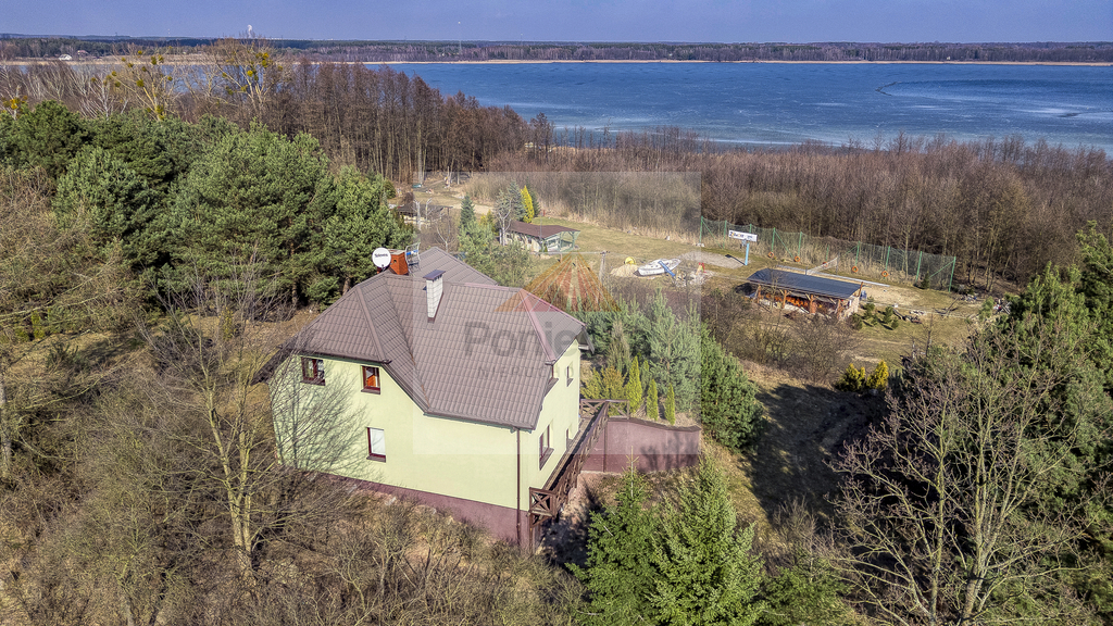 Nieruchomość jest usytuowana na przestronnej działce (pow.3100 m 2) na lekkiej skarpie w bardzo bliskiej odległości od linii brzegowej.