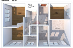 Na podłodze płytki ceramiczne (salon, kuchnia, łazienki, WC) oraz panele (pokoje).