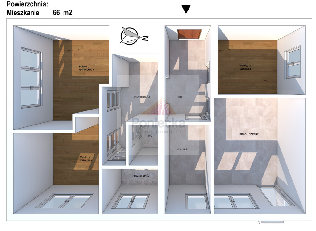 4 oddzielne, ustawne pokoje - każdy dobrze doświetlony i w proporcjach ułatwiających aranżację.