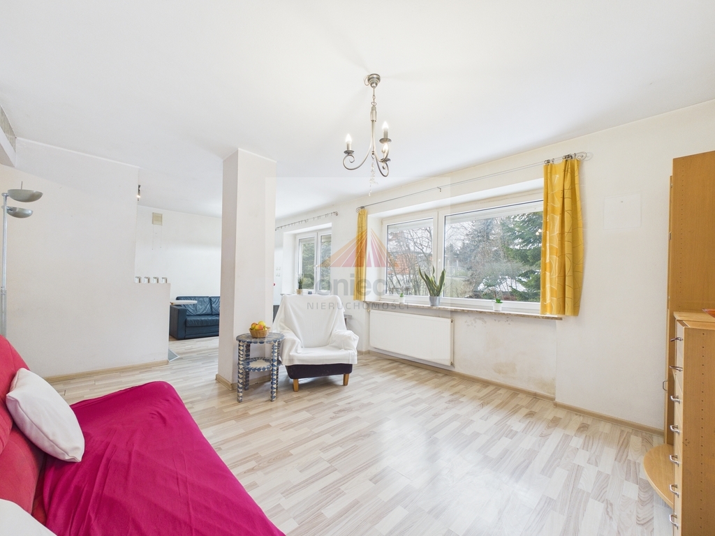 -Salon z aneksem kuchennym - przestronny, doskonale doświetlony dzięki dużym oknom, idealny do relaksu, spotkań z rodziną i przyjaciół.