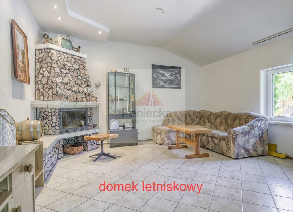 Domek letniskowy ok. 40 m2, łazienka 3 m2 kominek z płaszczem wodnym i grzejnikami. Pomieszczenia gospodarcze ocieplone, ze strychem. (łącznie ok. 42 m2),