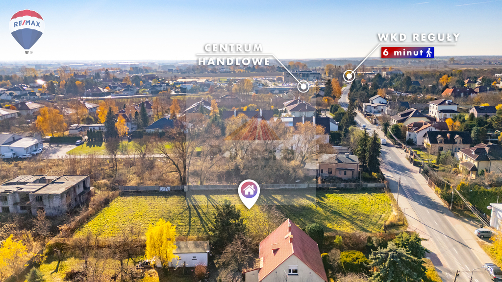 Przedmiotem sprzedaży jest niezabudowana działka 402/1 obręb 0013 Reguły, ul. Regulska 37b w pobliżu stacji WKD (6 min pieszo) i obwodnicy S2 (9 min autem).