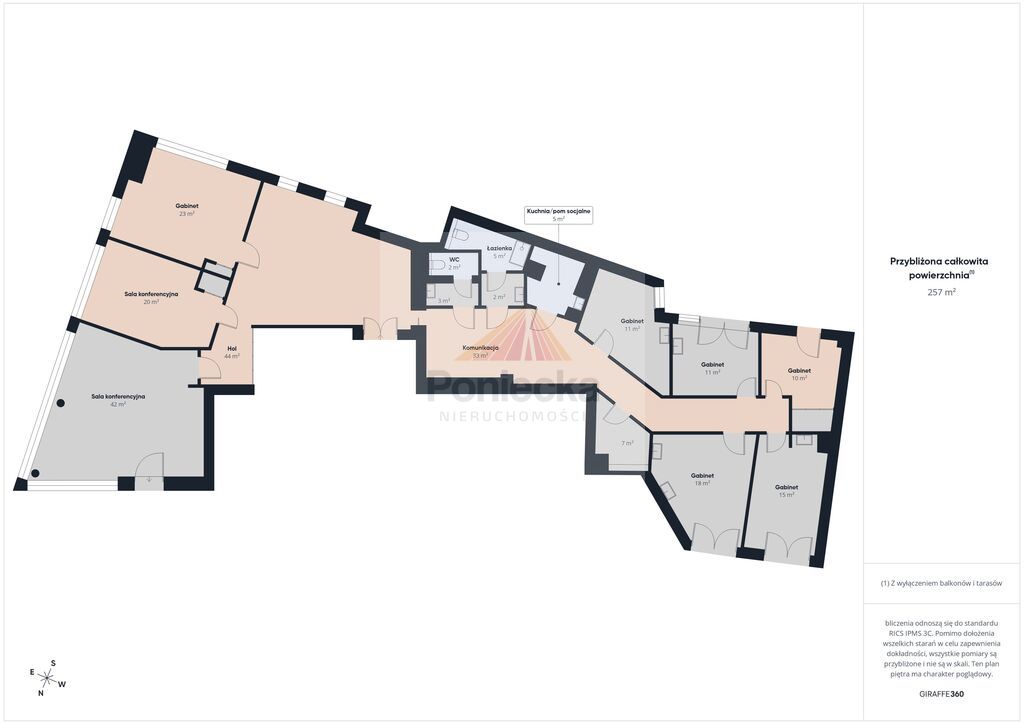 -sześć gabinetów (w tym gabinet wygłuszony oraz gabinet z wyjściem na taras),