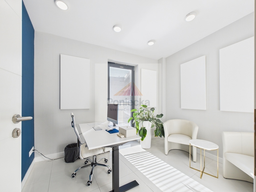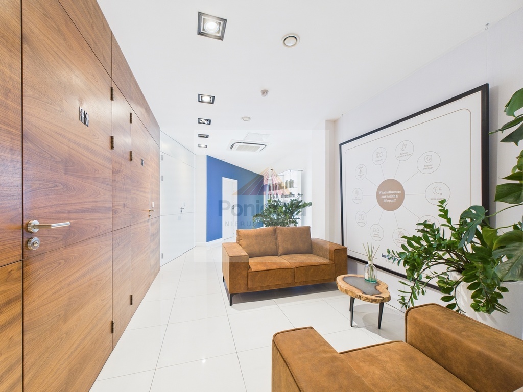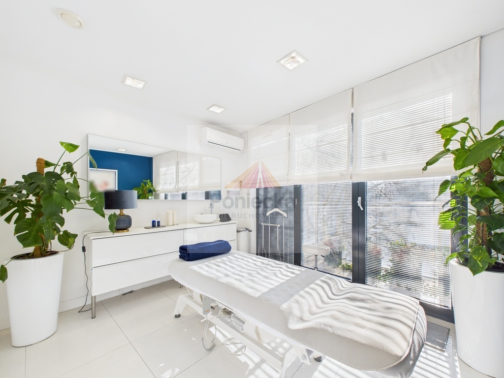 Lokal o powierzchni 257 m2 został zaprojektowany z myślą o działalności wymagającej komfortu, prywatności i wysokiego standardu obsługi. Obecnie funkcjonuje jako renomowane gabinety medycyny estetycznej z zapleczem konferencyjnym, jednak jego układ umożliwia elastyczne dopasowanie do innych form działalności.