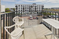 Okna mieszkania mają ekspozycję wschód, południe i wychodzą na lokalną uliczkę.