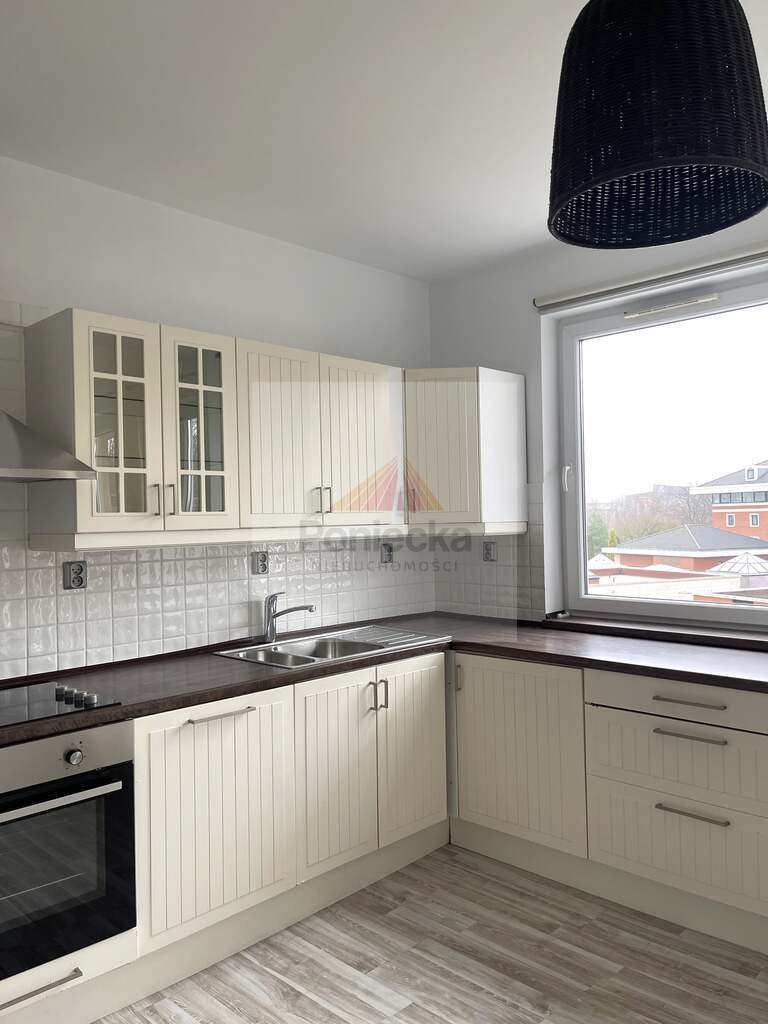 * Pięknie doświetlony salon z wyjściem na duży balkon, z otwartą, w pełni wyposażoną w AGD kuchnią(zmywarka, lodówka z zamrażalnikiem, płyta elektryczna, piekarnik, okap oraz pralka)