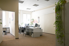 Układ pomieszczeń umożliwia zarówno pracę gabinetową, jak i organizację działów firmy w jednym miejscu.